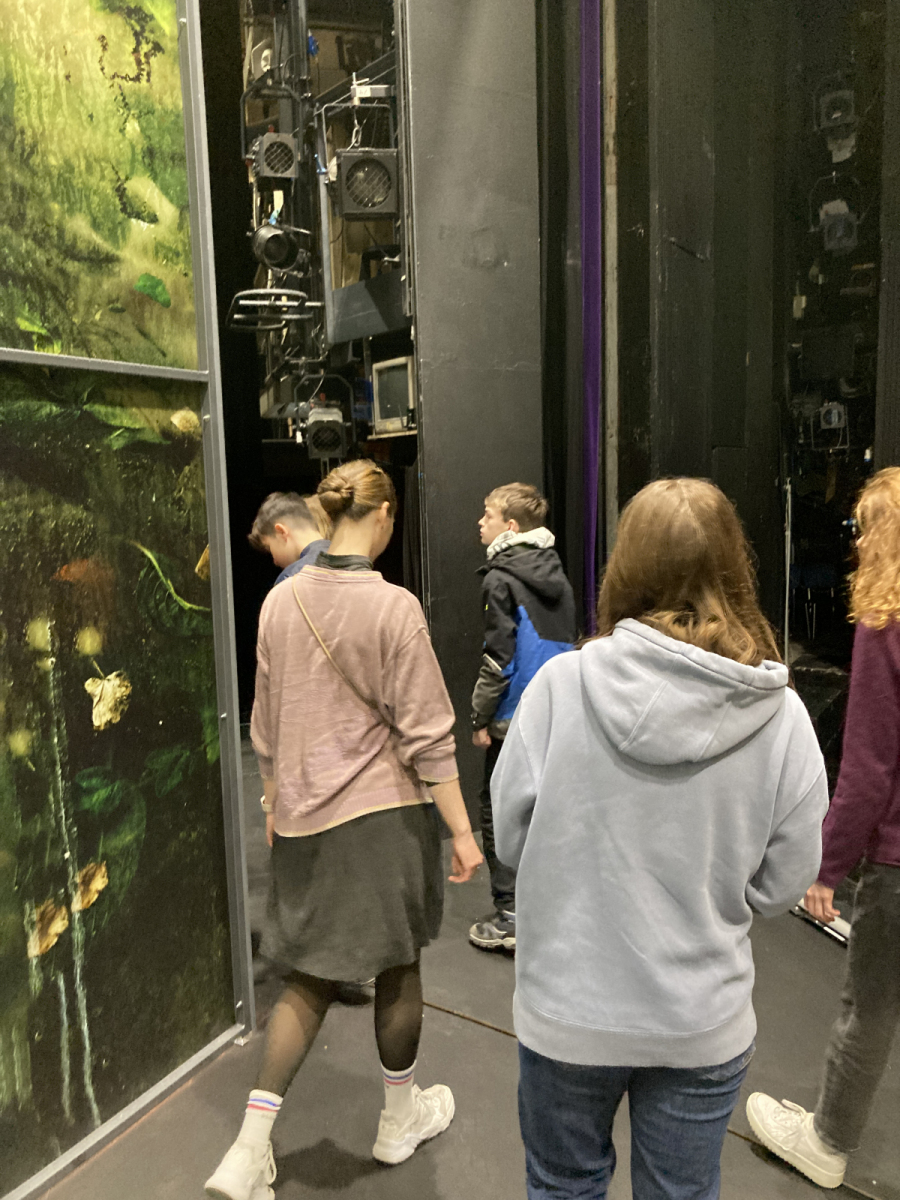 Klasse 7a und 7b haben gemeinsam das Stadttheater Münster besucht. Zunächst hat Bühnentechniker Robert Figgen uns eine eindrucksvolle Führung hinter die Kulissen gewährt. Wir durften auf und hinter der Bühne des großen Hauses stehen, Requisiten aus nächster Nähe betrachten und ganz nach oben auf den Schnürboden klettern, den höchsten Teil des Bühnenhauses. Anschließend haben wir uns das inspirierende und gleichzeitig lustige Stück „Und alles“ angesehen. Das Theaterstück erzählt die Geschichte von Ehsan, der vor den Schrecken der Welt in einen Bunker flüchtet, weil ihm Klimakrise, Krieg und Machtgier zu viel werden. Seine Freunde versuchen mit Fantasie, Witz und Hoffnung, ihn wieder ins Leben zurückzuholen.