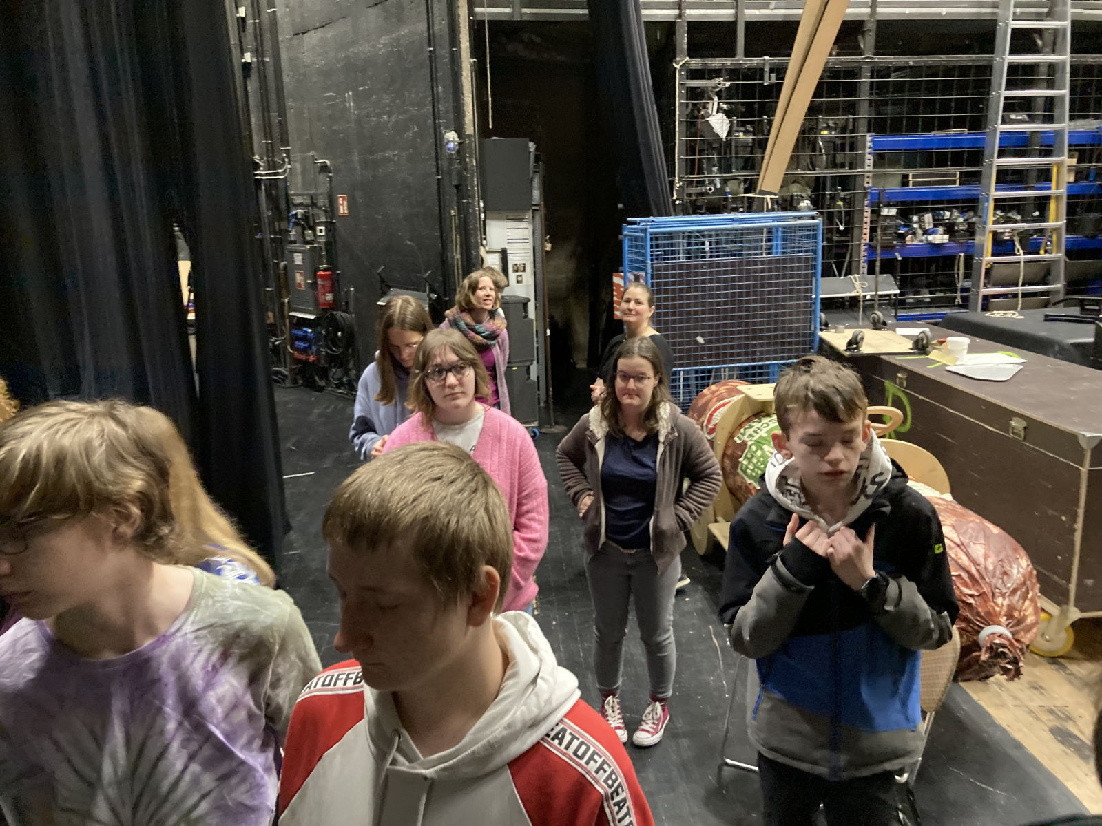 Klasse 7a und 7b haben gemeinsam das Stadttheater Münster besucht. Zunächst hat Bühnentechniker Robert Figgen uns eine eindrucksvolle Führung hinter die Kulissen gewährt. Wir durften auf und hinter der Bühne des großen Hauses stehen, Requisiten aus nächster Nähe betrachten und ganz nach oben auf den Schnürboden klettern, den höchsten Teil des Bühnenhauses. Anschließend haben wir uns das inspirierende und gleichzeitig lustige Stück „Und alles“ angesehen. Das Theaterstück erzählt die Geschichte von Ehsan, der vor den Schrecken der Welt in einen Bunker flüchtet, weil ihm Klimakrise, Krieg und Machtgier zu viel werden. Seine Freunde versuchen mit Fantasie, Witz und Hoffnung, ihn wieder ins Leben zurückzuholen.