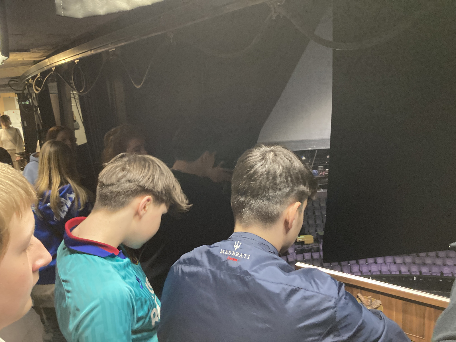 Klasse 7a und 7b haben gemeinsam das Stadttheater Münster besucht. Zunächst hat Bühnentechniker Robert Figgen uns eine eindrucksvolle Führung hinter die Kulissen gewährt. Wir durften auf und hinter der Bühne des großen Hauses stehen, Requisiten aus nächster Nähe betrachten und ganz nach oben auf den Schnürboden klettern, den höchsten Teil des Bühnenhauses. Anschließend haben wir uns das inspirierende und gleichzeitig lustige Stück „Und alles“ angesehen. Das Theaterstück erzählt die Geschichte von Ehsan, der vor den Schrecken der Welt in einen Bunker flüchtet, weil ihm Klimakrise, Krieg und Machtgier zu viel werden. Seine Freunde versuchen mit Fantasie, Witz und Hoffnung, ihn wieder ins Leben zurückzuholen.